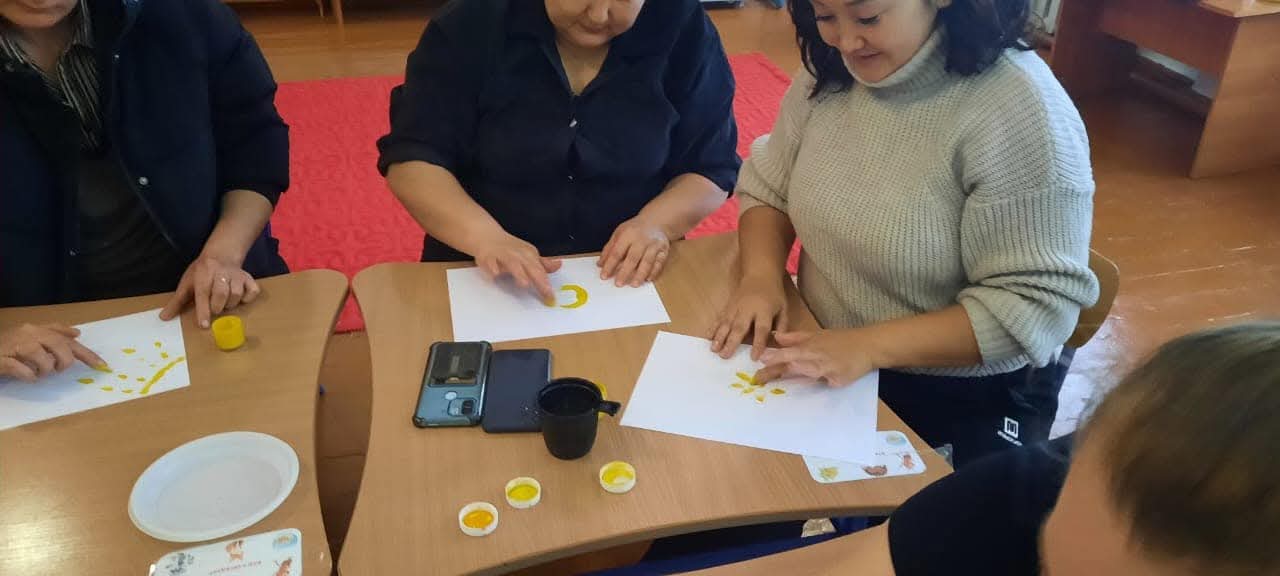 Ата-аналарға балалар рөлінде болу, ойын ойнау, жаттығу жасау және сурет салу ұсынылды.